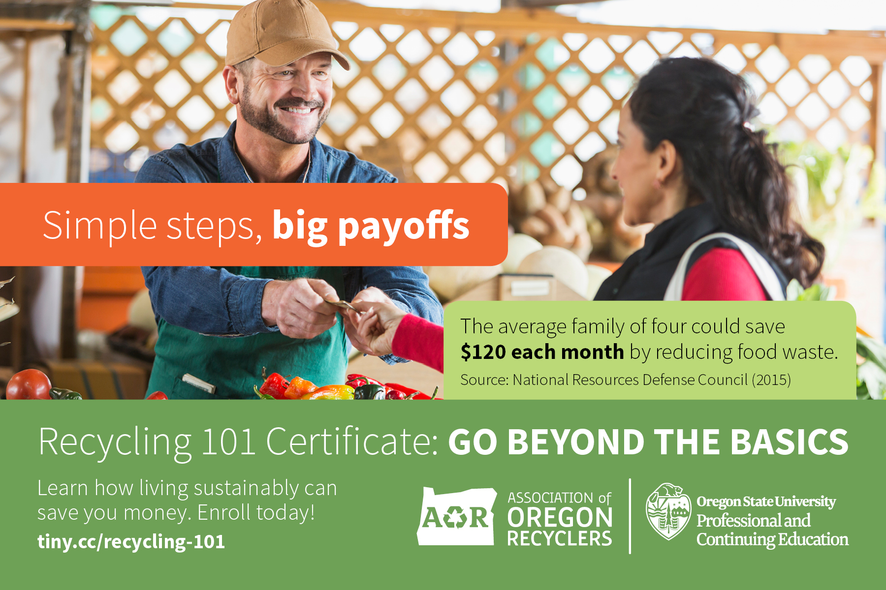 In 2017, with support from Recycling Advocates, AOR received a Materials Management Grant from the Oregon Department of Environmental Quality to develop marketing materials for the Recycling 101 course.